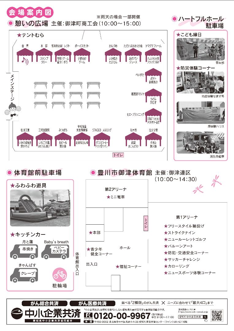 テントむら … 体育館前に移動(一部出店キャンセルあり)